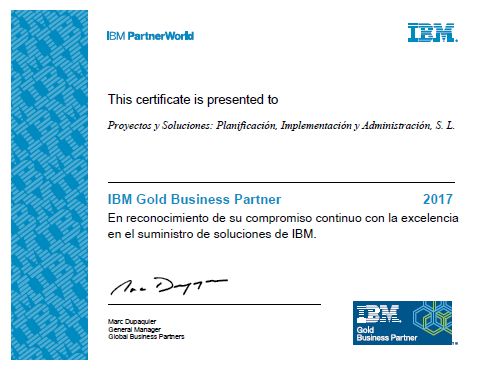 Una vez más Proyectos y Soluciones cumple su objetivo y es reconocido por IBM como Gold Business Partner.